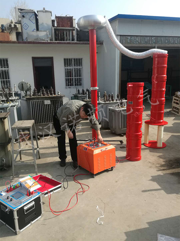 電抗器和分壓器之間的電線直接連接到待測試電纜的相位。電纜的其他兩相和屏蔽線接地,電纜的另一端用樹木隔開。注:在連接電纜前,應對電纜進行絕緣試驗,以確認各相與地、相與相之間的絕緣完好。接線完成后,接通電源,設置變頻電源。主要修改有兩個地方,一個是試驗電壓,另一個是耐受電壓時間。設置完成后,第一個測試為自動測試,第二個測試為手動測試。手動測試:您可以手動調整頻率找到共振點,手動將其升高到所需電壓,單擊開始時間,完成時間,單擊降壓停止。自動測試:直接進入自動測試界面,點擊自動測試,試驗將動找諧振點,升壓,計時及降壓。
